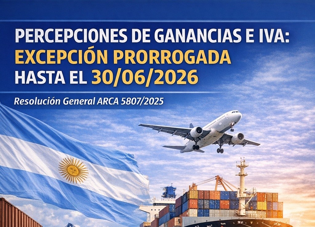 El día de hoy ARCA publicó la Resolución General 5807/2025 (Boletín Oficial 30/12/2025), mediante la cual prorroga hasta el 30 de junio de 2026 un beneficio que impacta directamente en el costo financiero de muchas importaciones: la exclusión transitoria de los regímenes de percepción de Impuesto a las Ganancias e IVA que se aplican en la importación definitiva.